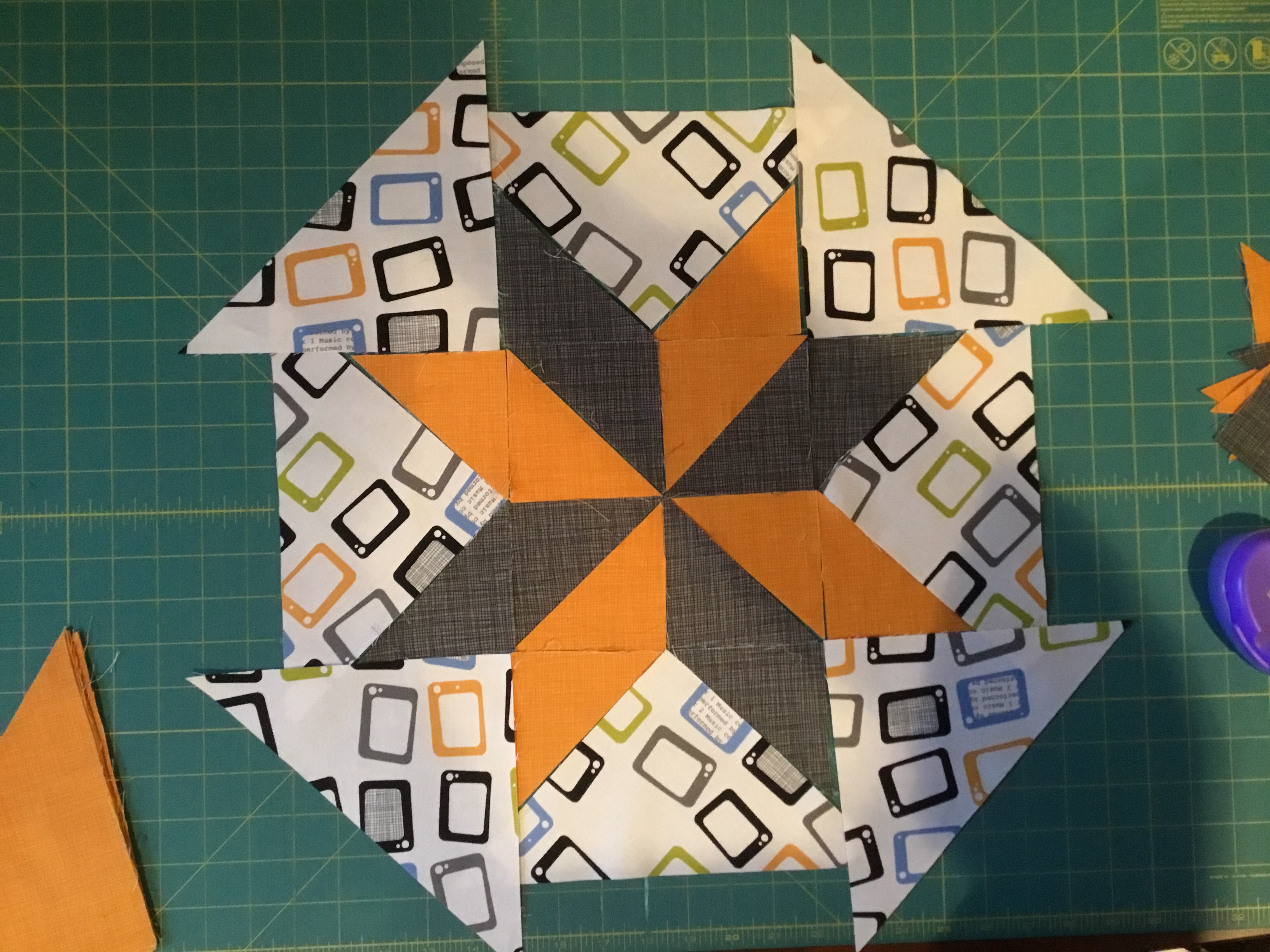 I’m gonna go out on a limb here, and make the statement that most quilters are as stingy as I am with my fabric, and hate disposing of scraps. Since LDL would have some wastage, I made up a few examples of what you can do with the leftovers. Haha. Leftovers. Get it? Anyway, I just loved making potholders that match the placemats. Looks so cool on my table. You’d almost think I have my crap together… alas, I do not. In fact, one of the reasons I love placemats is because my boys have not yet perfected (nor even occasionally practice) the art of cleaning up after they spill. So why not use a tablecloth? Well, I’m not caught up on laundry enough to keep tablecloths clean. Also, it’s hard to find a pattern that sits perfectly on your table. Also, I like seeing the “wood” on my table, and tablecloths cover that up. So yeah… I just find placemats easier to keep up with. And you can have so many of them to play with! Ack! They’re so fun!