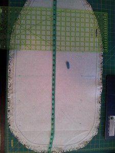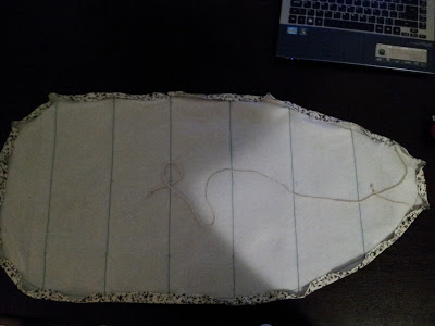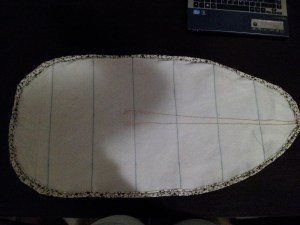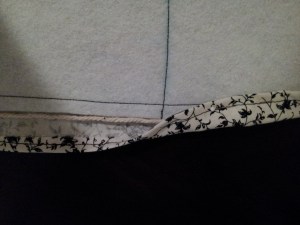 I chose this fabric because it’s off-white and looks antique. I figure that, as I spilled Best Press and what-have-you on the cover, it would just add to the antique look.