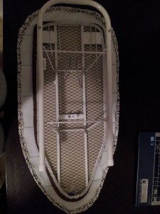 Try to hold your ironing board still as you pull on the cording, eventually tightening the cover to your ironing board. Make the cord nice and tight and then tie it off. I tied my cording to the ironing board frame, because I don’t like to have things dangling.