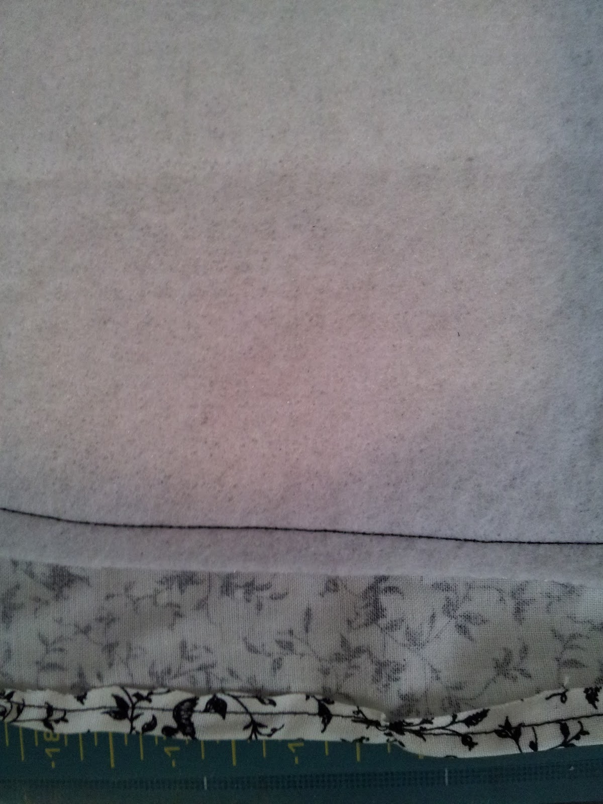 Now lay your batting onto the wrong side of your fabric and use your marker to create an outline an inch larger than your batting stencil. I would suggest putting the shiny side down, if your batting has one (the opposite of what I did in the picture) in case your stencil isn’t quite symmetrical (it’s fine if it isn’t).